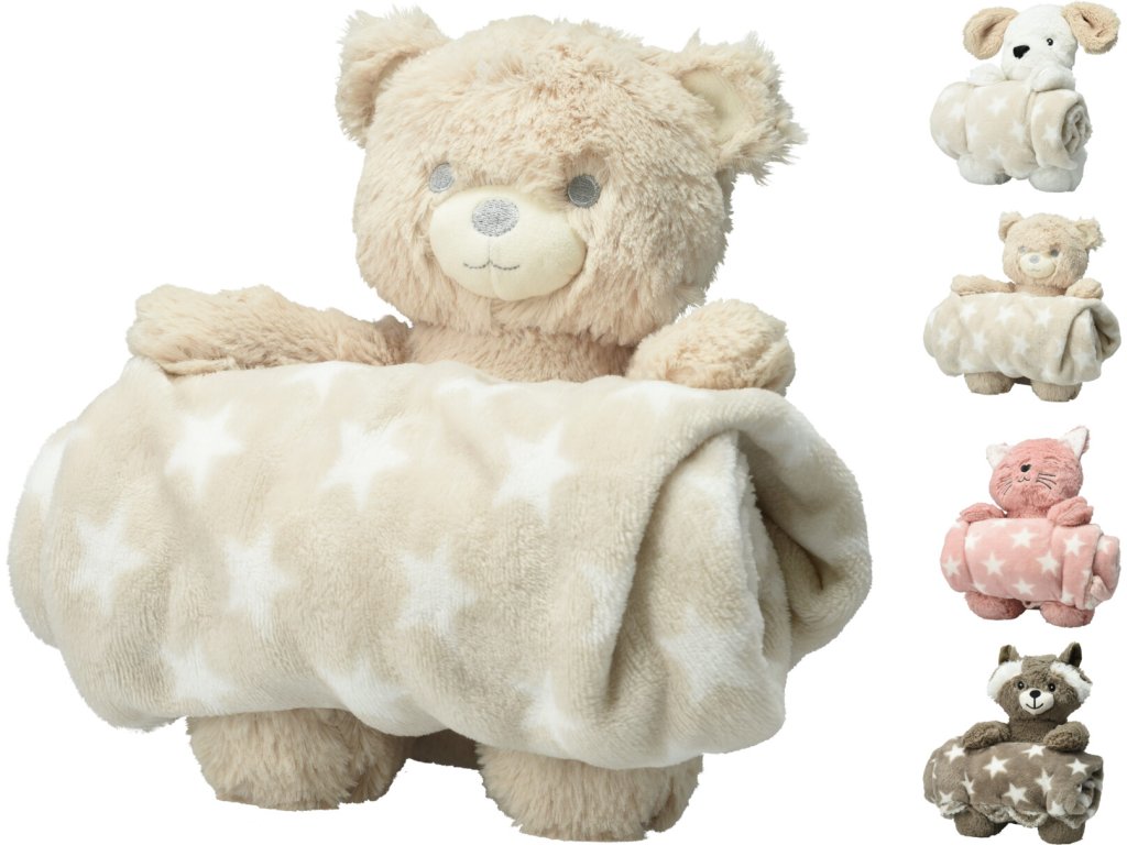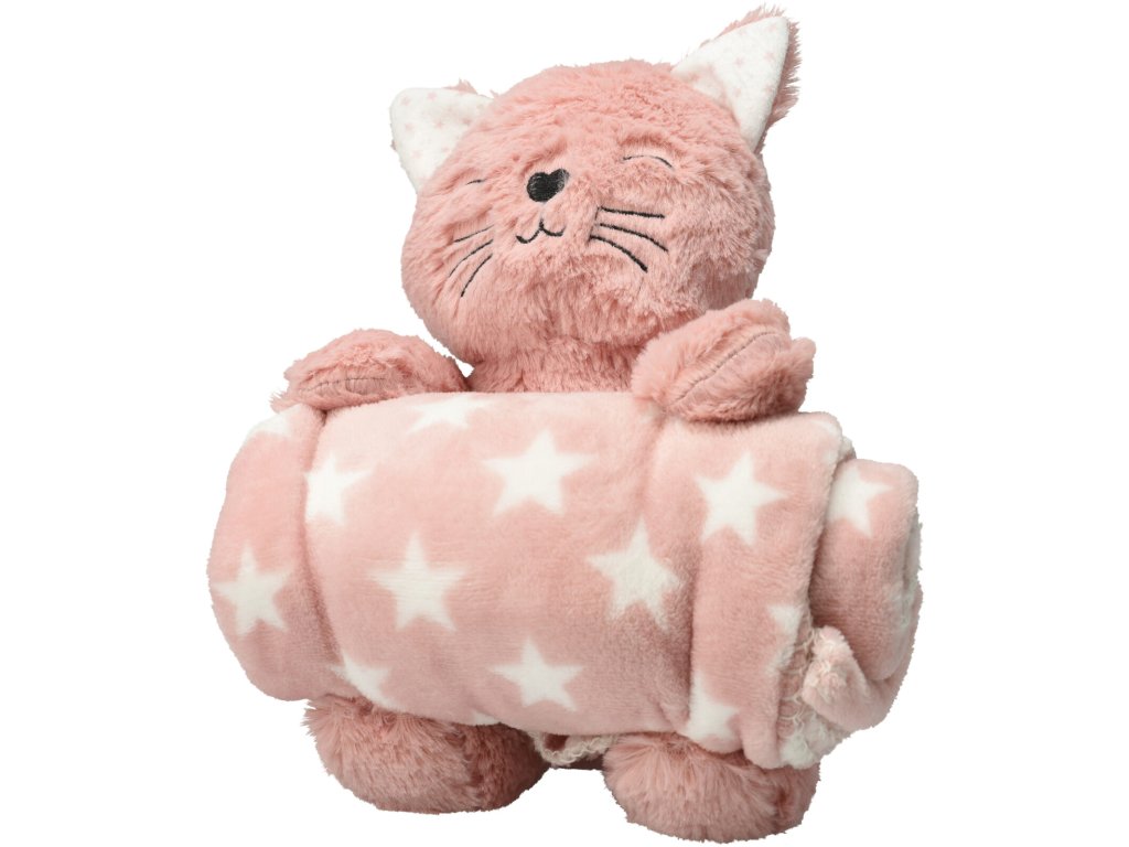 Měkká kočička s dekou s hvězdami pro děti (75x100 cm)