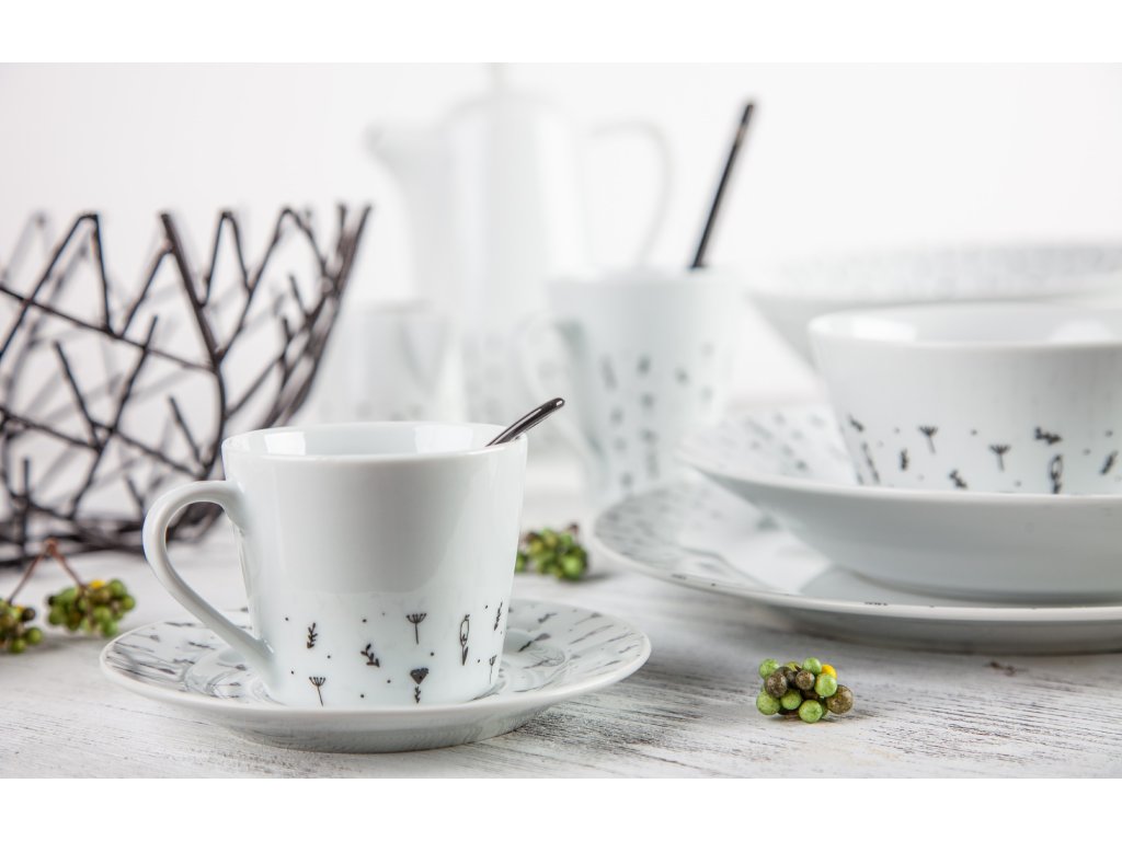 Rozeseté bylinky a malá luční kvítka na talíři či šálku. Jemný a milý motiv pro romantické duše vykouzlili designéři české rodinné firmy by inspire. I přesto, že je dekor v černé barvě, je tak jemně zpracovaný, že rozhodně nepůsobí tvrdě. Tato kolekce sluší moderním domácnostem, vyjímat se bude i na chatách a venkovských stavení.