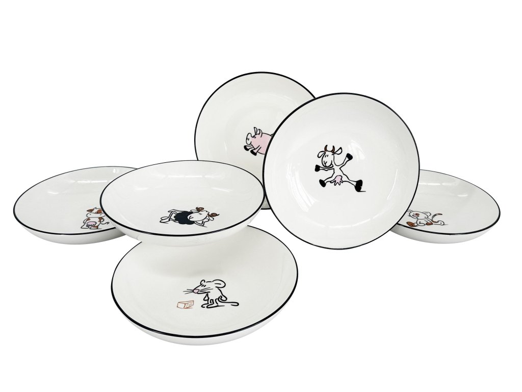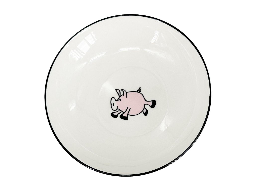 Miska/hluboký talíř PRASÁTKO, 19,5x4cm, bílá s černou linkou