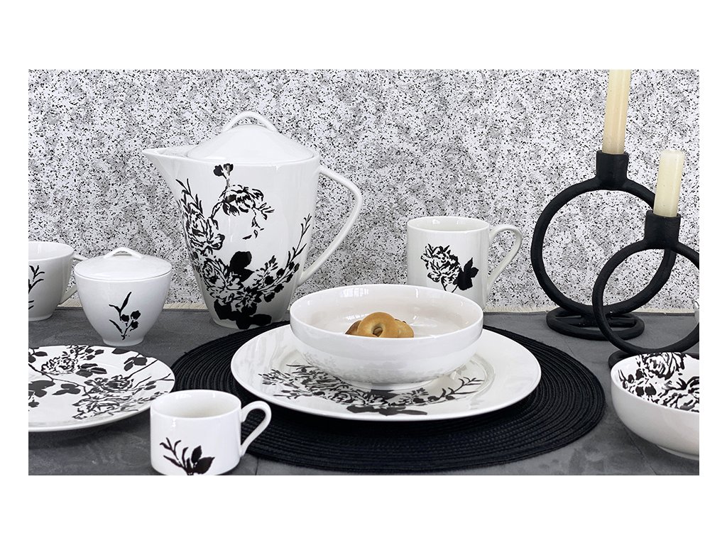 Porcelánová mléčenka Natty s dekorem černé růže.