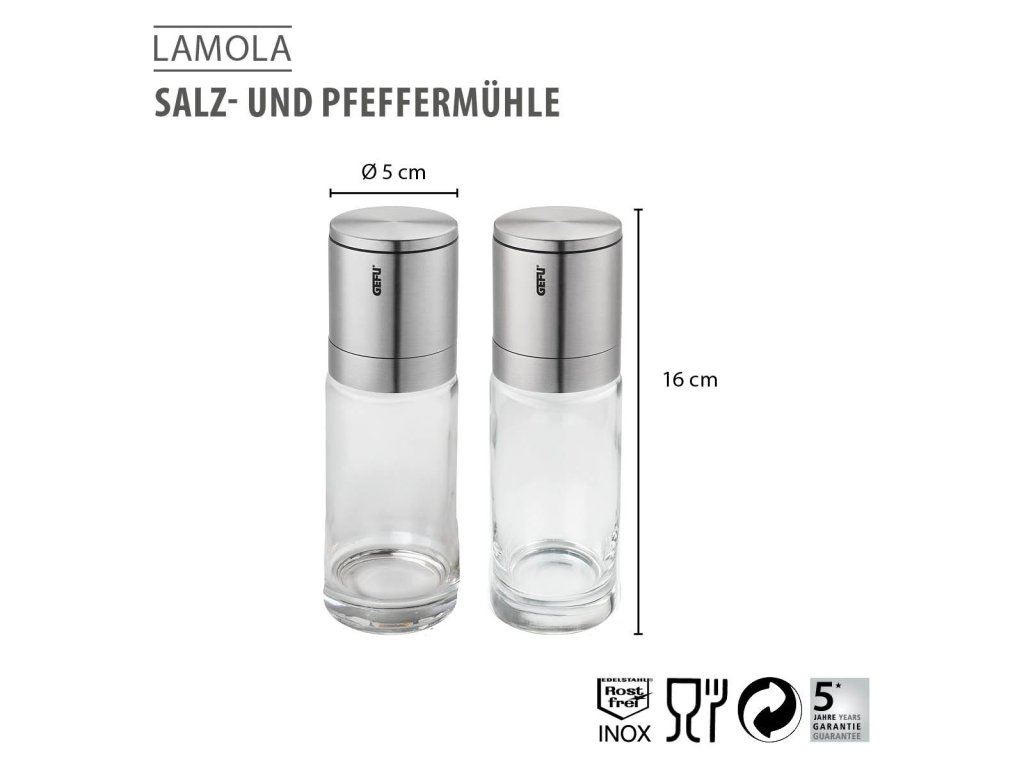 Mlýnek na sůl a pepř LAMOLA, 2 ks, Gefu