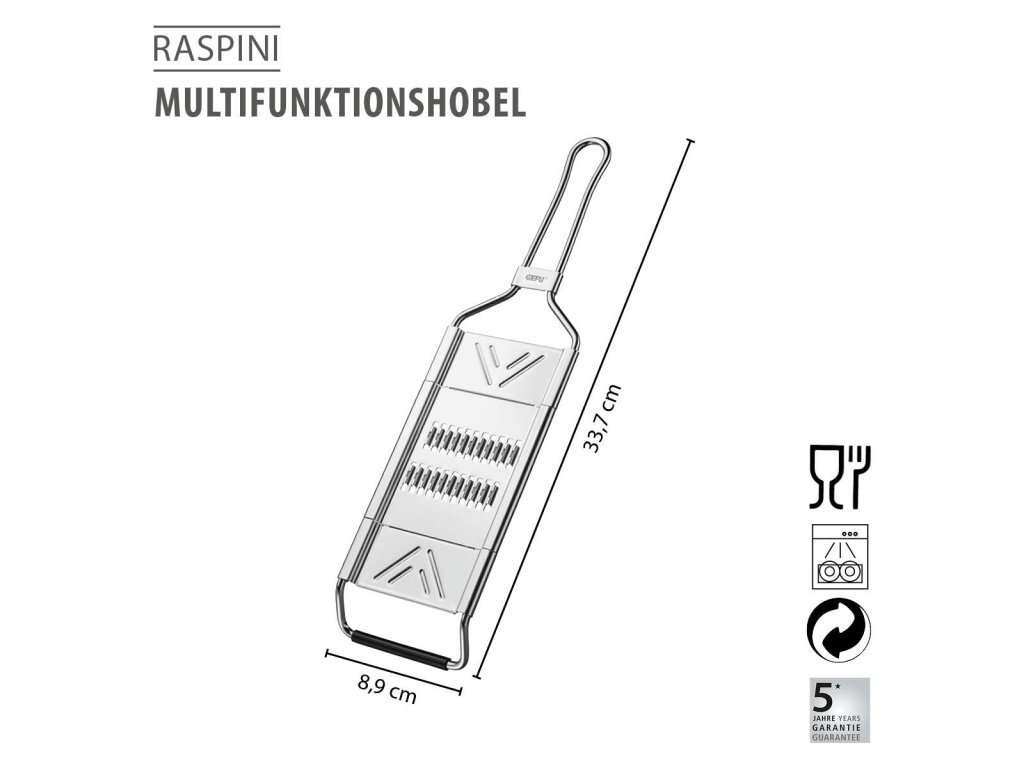 Multifunkční struhadlo RASPINI je navržen pro maximální efektivitu při přípravě surovin. Jediným plynulým pohybem nahoru a dolů vytváří extra ostrá krájecí čepel čtyři rovnoměrné plátky zeleniny, jako jsou okurky, cukety a další druhy. Díky tomu výrazně urychluje práci v kuchyni a zajišťuje konzistentní výsledky.