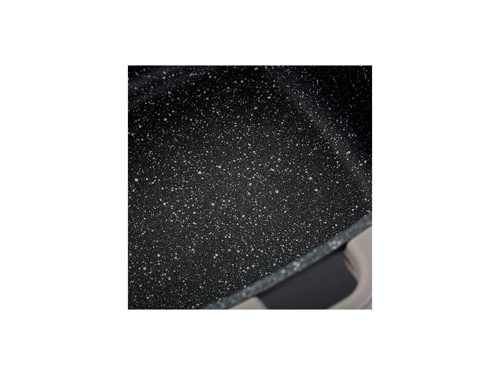 Zapékací hrnec o průměru 20 cm je ideální pro každodenní použití v kuchyni. Kombinuje kvalitu s moderním designem. Jedná se o praktický hrnec vyrobený z litého hliníku s nepřilnavým povrchem bez PFOA. Ergonomické rukojeti s odnímatelnými silikony pro příjemné a bezpečné uchopení. Součástí je poklice s odolným termo úchytem. Vynikající rozložení teploty pro dokonalou přípravu jídel. Snadno se čistí, je vhodný i do myčky na nádobí. Hrnec je vhodný i pro použití v troubě (bez úchytů). Hrnec má průměr základny 14 cm, výšku 13 cm a objem 2,6 l. Váha 1,2 kg
