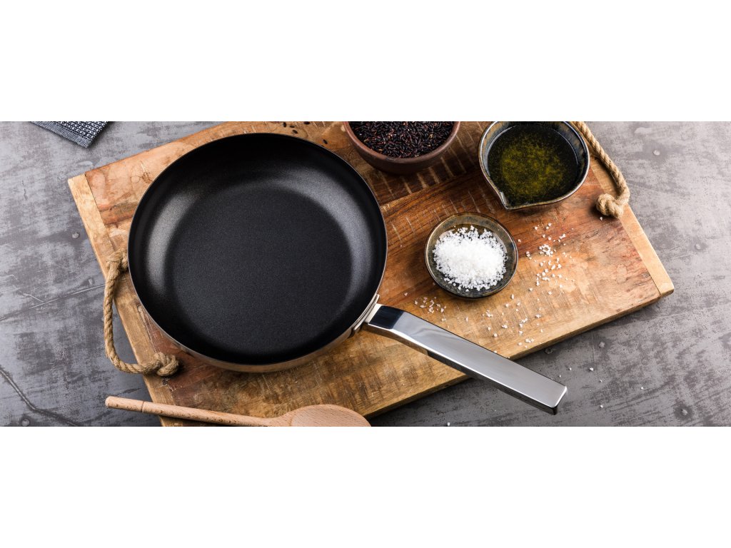 Konstrukce této pánve vytváří luxusní dojem, díky výraznému a jedinečnému designu. Nadměrná rukojeť se zaobleným okrajem zaručuje ergonomickou přilnavost.