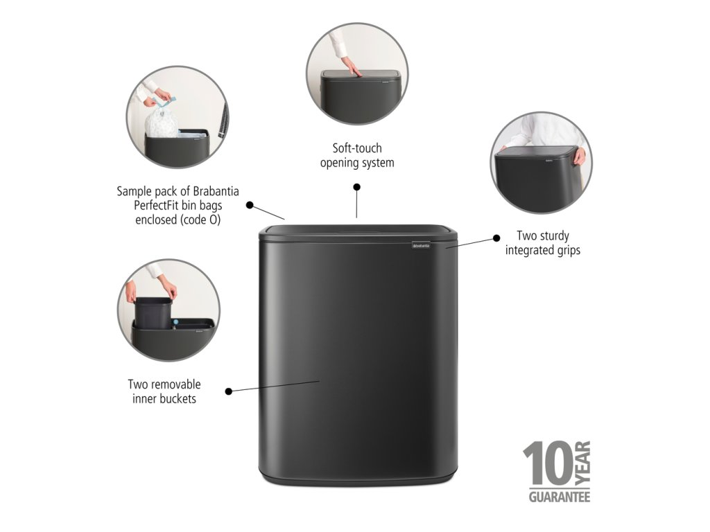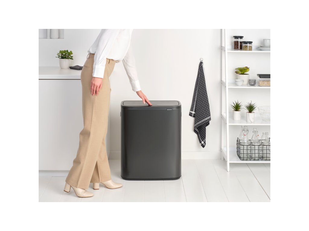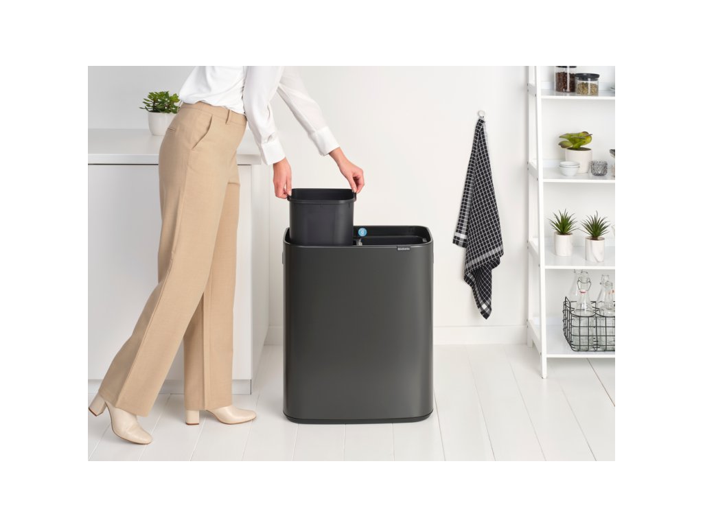 Hledáte šikovné řešení pro třídění odpadu se špetkou elegance? Představujeme vám XXL odpadkový koš Brabantia Bo Touch Bin o objemu 2 x 30 litrů, který spojuje krásný design s praktickými funkcemi pro snadné třídění odpadu v domácnosti. Tento kouzelný krasavec je vybaven dvěma prostornými a vyjímatelnými vnitřními nádobami na dva různé druhy odpadu. Otevřete jej jen lehkým dotekem a oceníte jeho pohodlné ovládání. Díky integrovaným úchytům jej snadno přemístíte, ať už chcete koš umístit ke zdi nebo ho přemístit do jiné místnosti. Takto velký krasavec se stane vaším skvělým pomocníkem ve vaší domácnosti!
