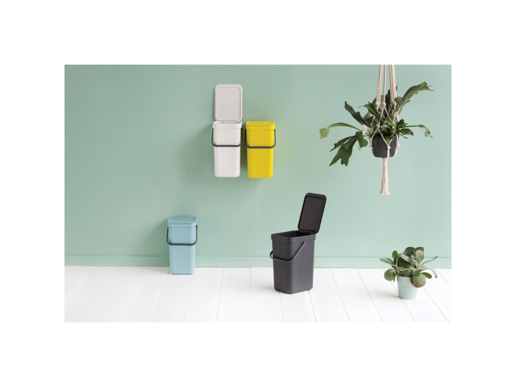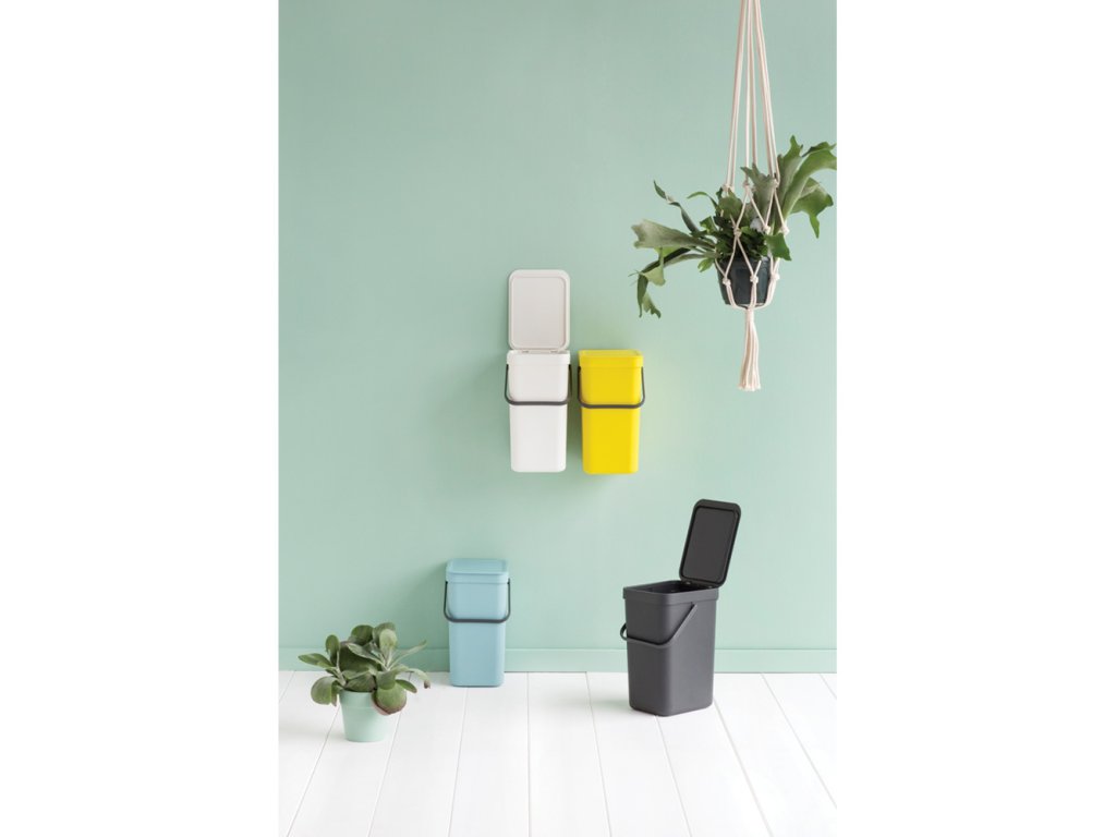 Brabantia směřuje do budoucnosti ke 100% recyklovatelnosti. Přinesla tedy na náš trh řadu Sort&Go. Jednoduché plastové koše se skvělým designem, který je Brabantii vlastní. Můžete vybírat ze 4 barev a 4 velikostí. Koše můžete mít postavené nebo je můžete zavěsit na zeď (závěsný úchyt je součástí balení), další možností jsou i vestavné koše (součástí vestavných košů je odolný rám, který je kompatibilní s běžnými korpusy kuchyňských skříněk) . Vytvořte si svojí zeď pro recyklaci a třiďte odpad podle sebe. Vyrobeno z kvalitního plastu. Koše jsou opatřeny velkou rukojetí. Víko drží otevřené nebo můžete celé víko odejmout.