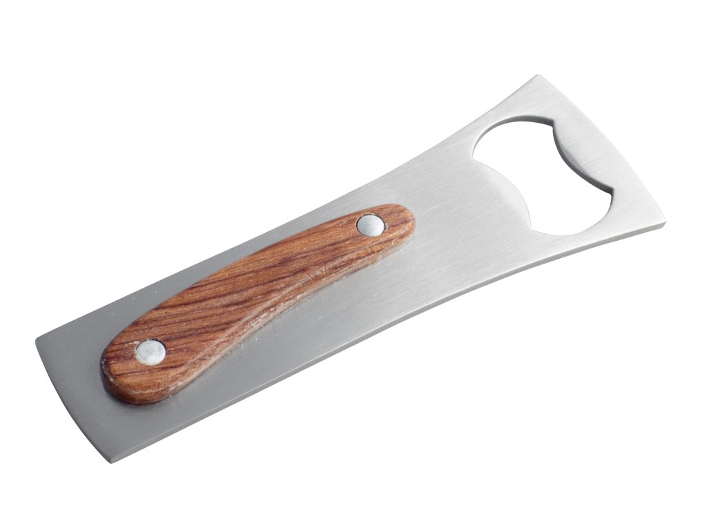 Otvírák na láhve vykládaný dřevem, nerez matná
