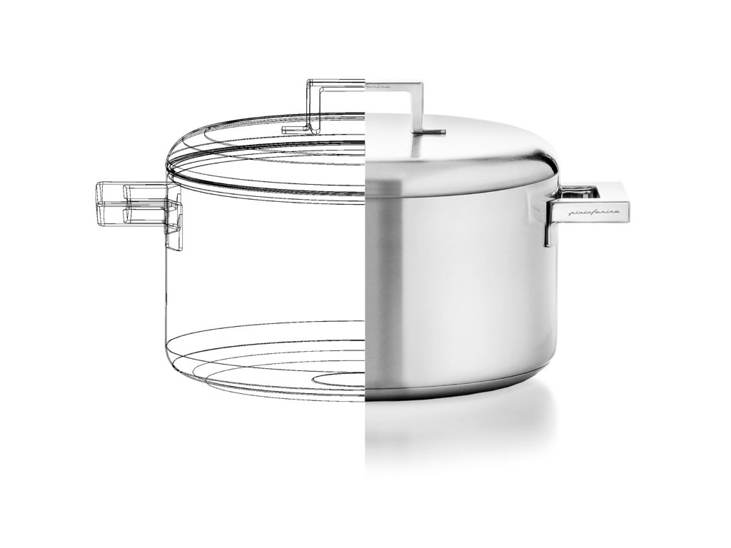 Masivní nádherné rukojeti s podpisem designéra - Pininfarina zdobí každý kus této kolekce. Opravdu nádherná kombinace strohého designu broušených hrnců s leštěnými úchytkami.