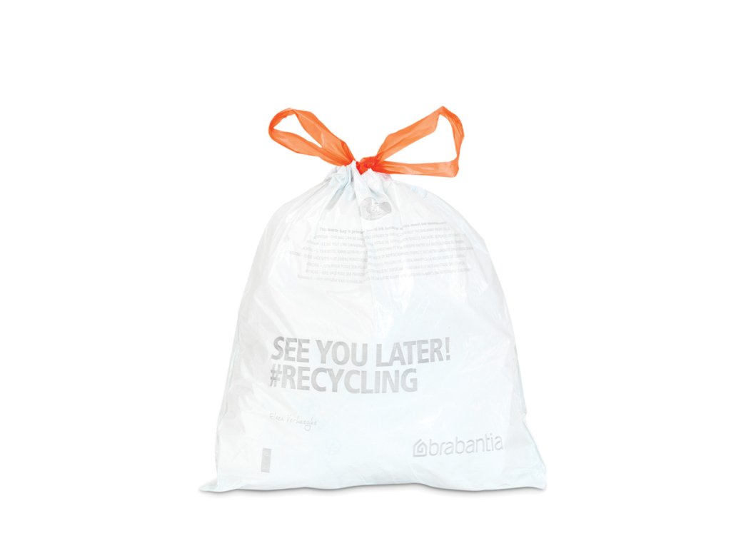 Odpadní pytle Brabantia jsou navrženy na míru vašeho koše Brabantia. Odpadkový pytel zkrátka z venku neuvidíte. Pytle jsou vyrobeny z kvalitního plastu, aby při manipulaci s odpadem nedošlo k havárii. Samozřejmostí je stahovací páska pro snadnější manipulaci s odpadem. Unikátní barevný kód na obalu pytlů odpovídá barevnému kódu na vašem koši.