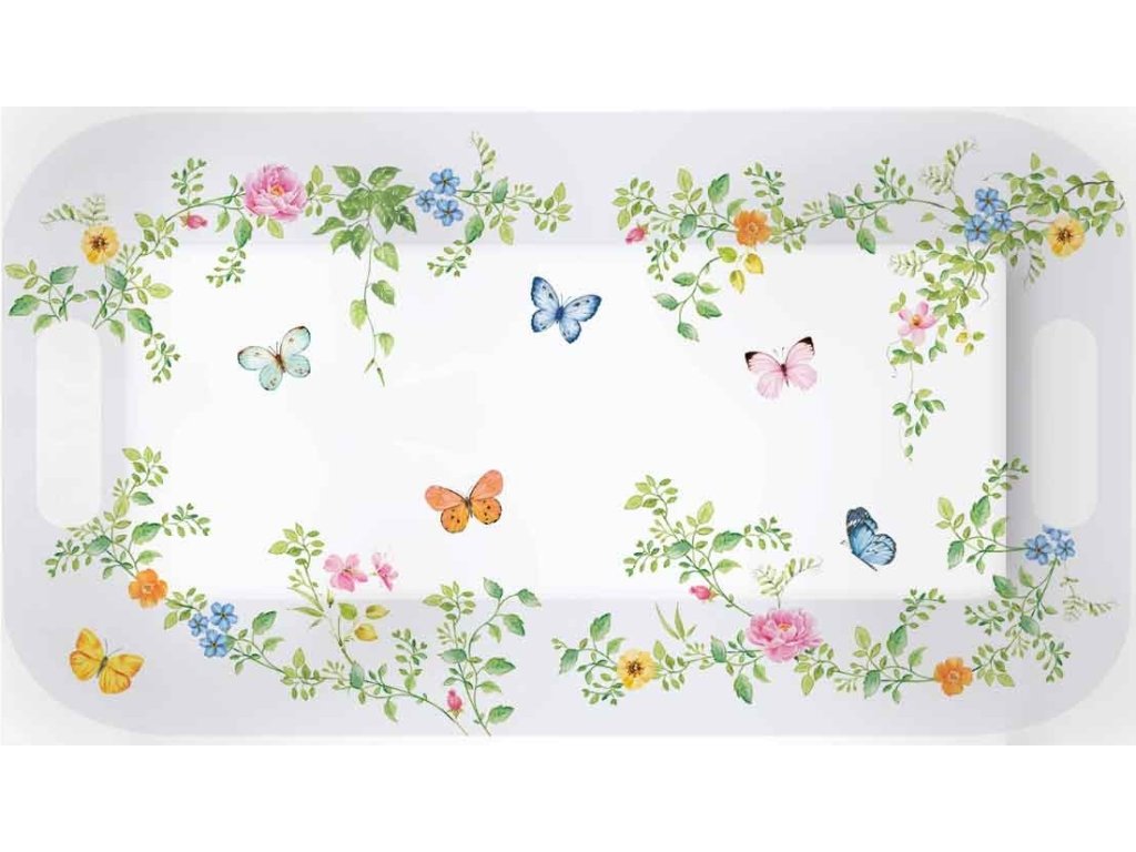 Vychutnejte si sváteční atmosféru s plastovým tácem Dancing Butterflies s nádhernými motivy motýlů. Tento lehký a odolný tác je ideální pro servírování svátečních dobrot, sladkostí nebo nápojů a zároveň krásně ozdobí váš stůl.