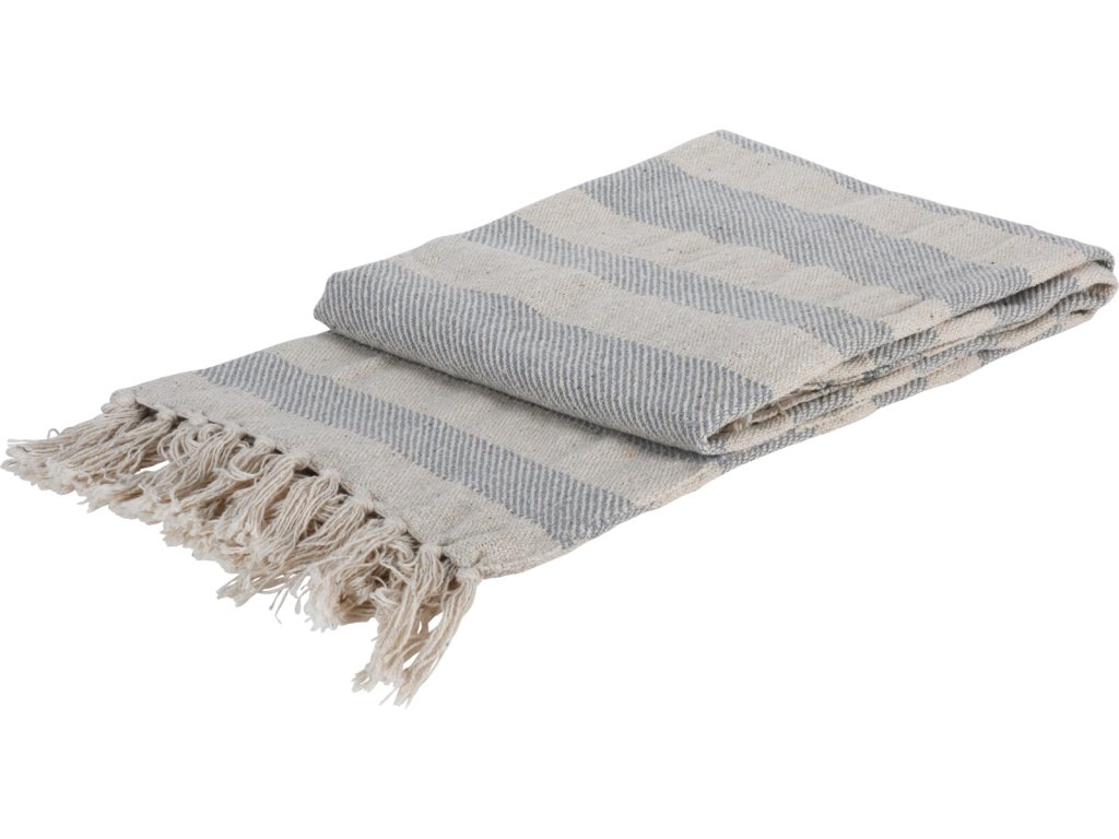 Pruhovaný bavlněný pléd - široké pruhy přírodní a modré.