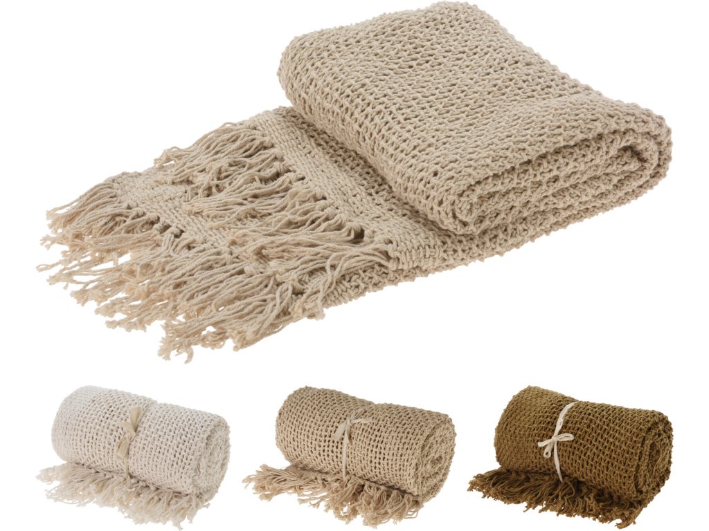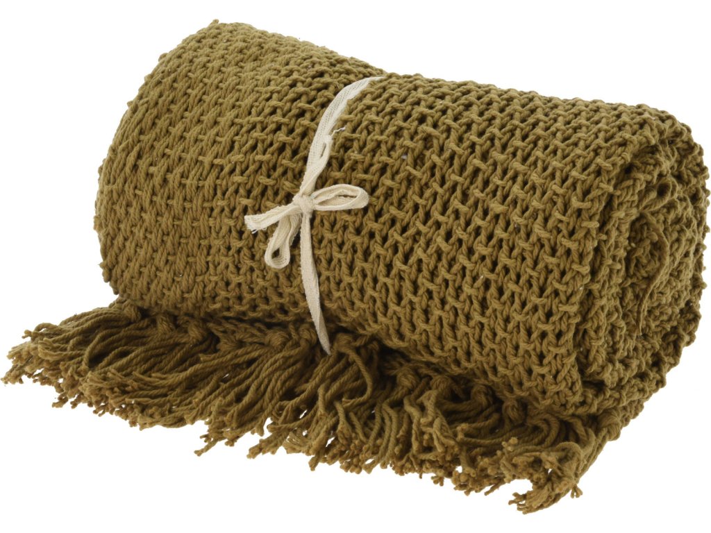 Pletený pléd/přehoz s třásněmi, 130x170cm, khaki.