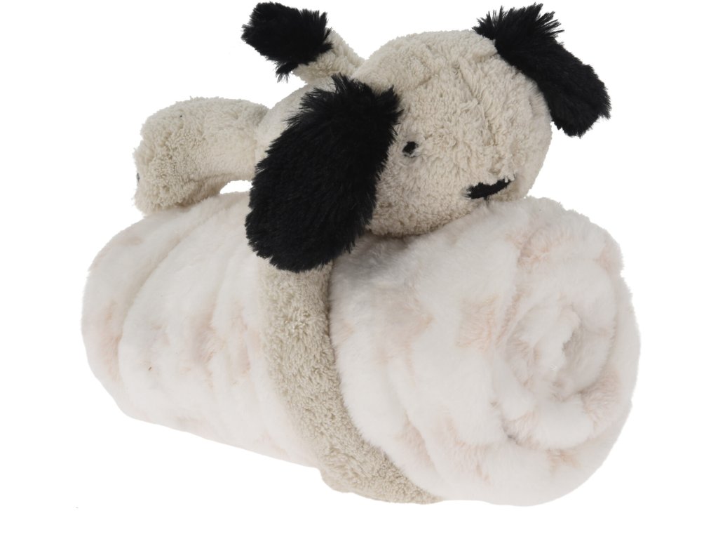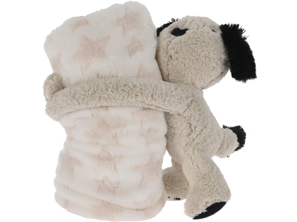 Vhodná do dětské postýlky, kočárku nebo také jako přehoz přes postel. Bonusem této deky s béžovými hvězdami je plyšák pes. Nepostradatelný a věrný kamarád pro všechny cesty kočárkem. Plyšák má zároveň praktickou úlohu pro sbalení deky.