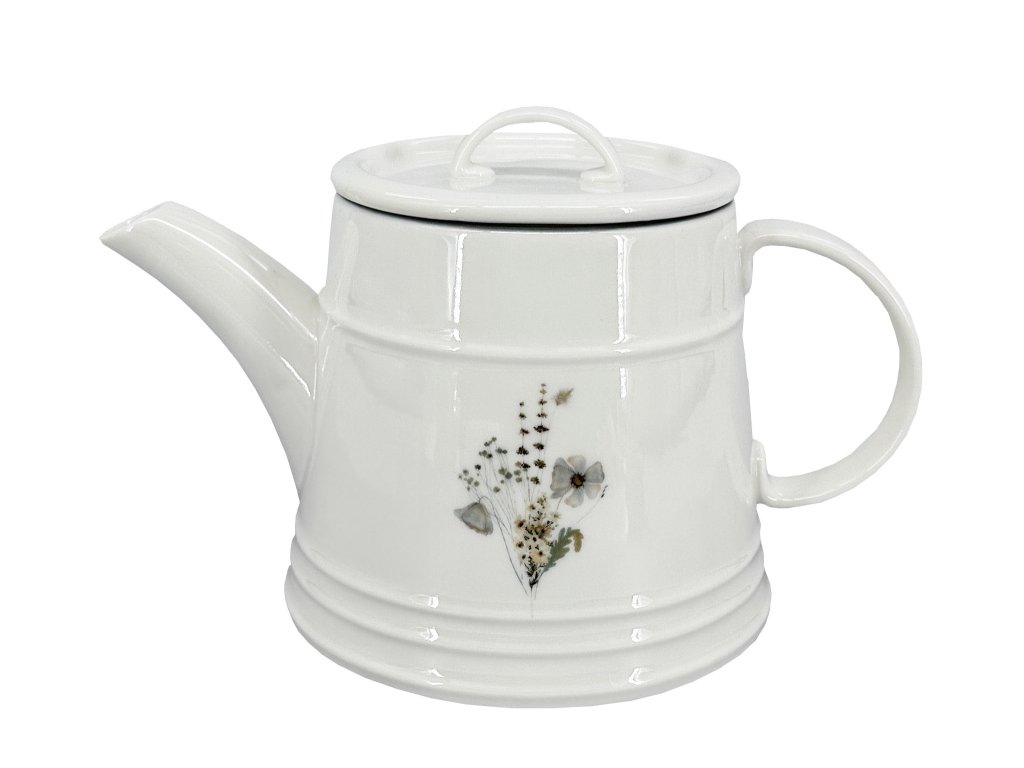 Konvice Nostalgie Meadow spojuje eleganci porcelánu s retro stylem inspirovaným smaltovaným nádobím. Jemný přírodní dekor lučních květin v neutrálních tónech dodává stolování harmonii a nadčasovost. Šedý lem podtrhuje vintage vzhled a dodává na autenticitě.