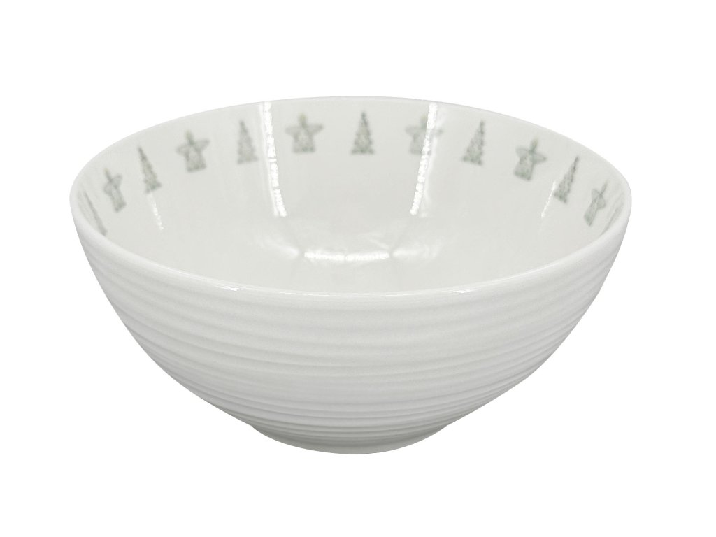 Vánoční miska, navržená českou značkou "by inspire", je zdobená na celé vnější straně jemným embosovaným reliéfem, zatímco na vnitřním horním okraji se nachází dekor andělů a vánočních stromečků rozmístěný po celém obvodu. Tento jedinečný design propojuje moderní styl s tradicí a příjemně doladí každé vánoční stolování.