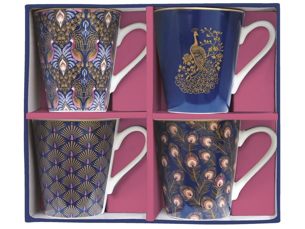 Sada porcelánových hrnků Peacock s motivy pavího peří. Objem hrnků je 300 ml. Čtyři čajové hrnky jsou zabaleny v dárkové krabičce stejného motivu.