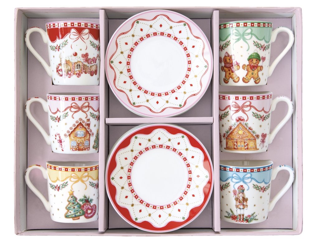Porcelánové šálky a podšálky na kávu Sweet Christmas