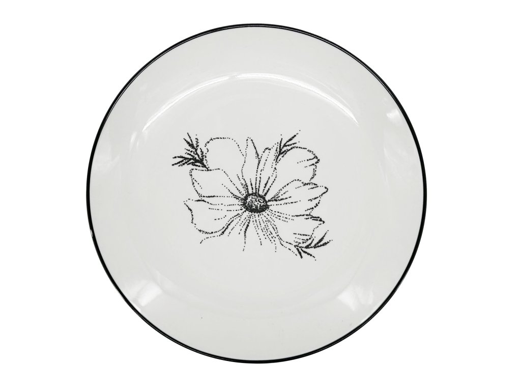 Porcelánový dezertní talíř Linea Dash Bloom, ø 19 cm, černá kytka