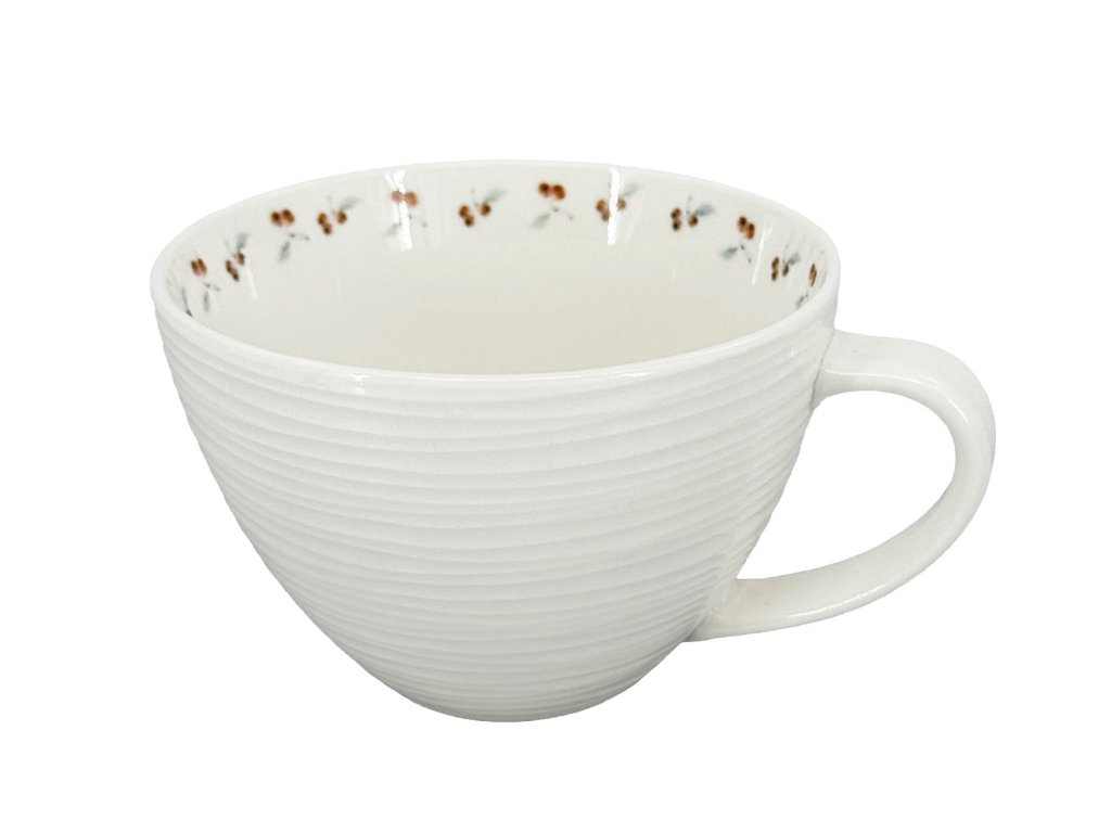 Hrnek Croft Berries s objemem 400 ml je dokonalým společníkem pro váš oblíbený čaj, kávu nebo horkou čokoládu. Porcelánový hrnek vyniká embosovanou vnější stranou, která mu dodává luxusní strukturu a příjemný úchop. Vnitřní stranu zdobí jemný motiv červených bobulí, který přináší do každodenního rituálu stolování lehkost a přírodní harmonii.
