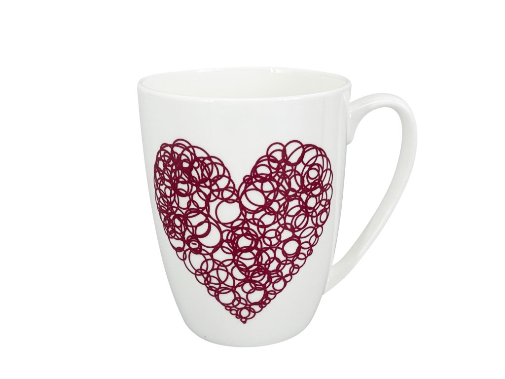 Porcelánový hrnek Luna Heart B, 350 ml, bílý/červený