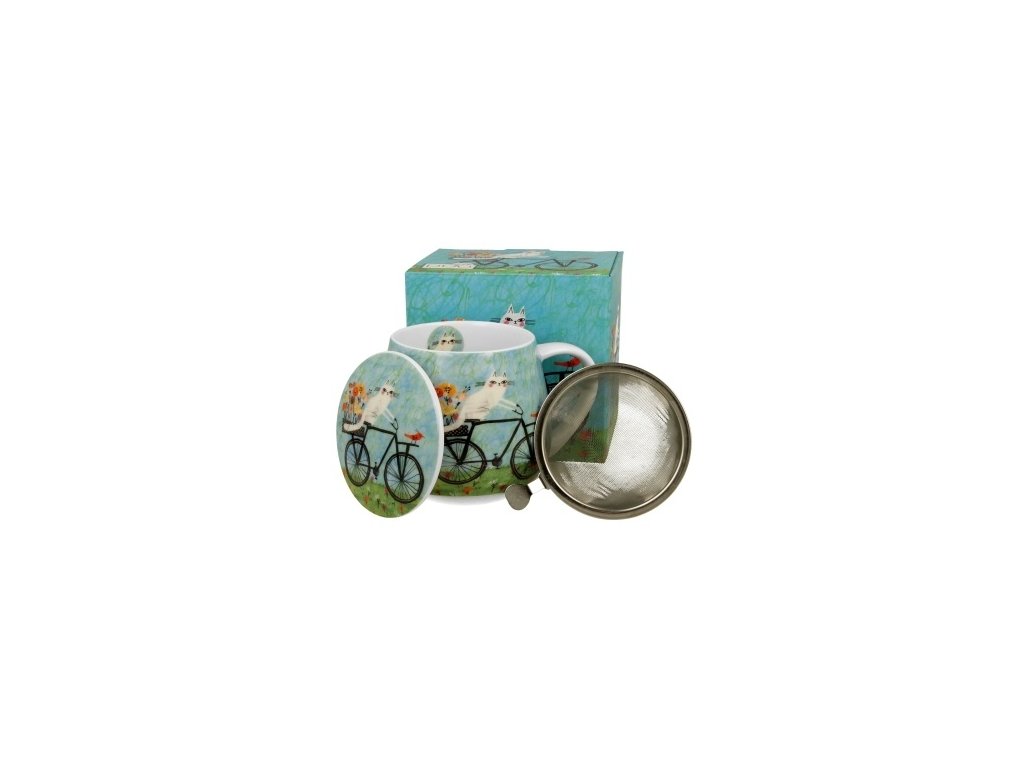 Porcelánový hrnek s čajovým sítkem Cat´s World Bicycle