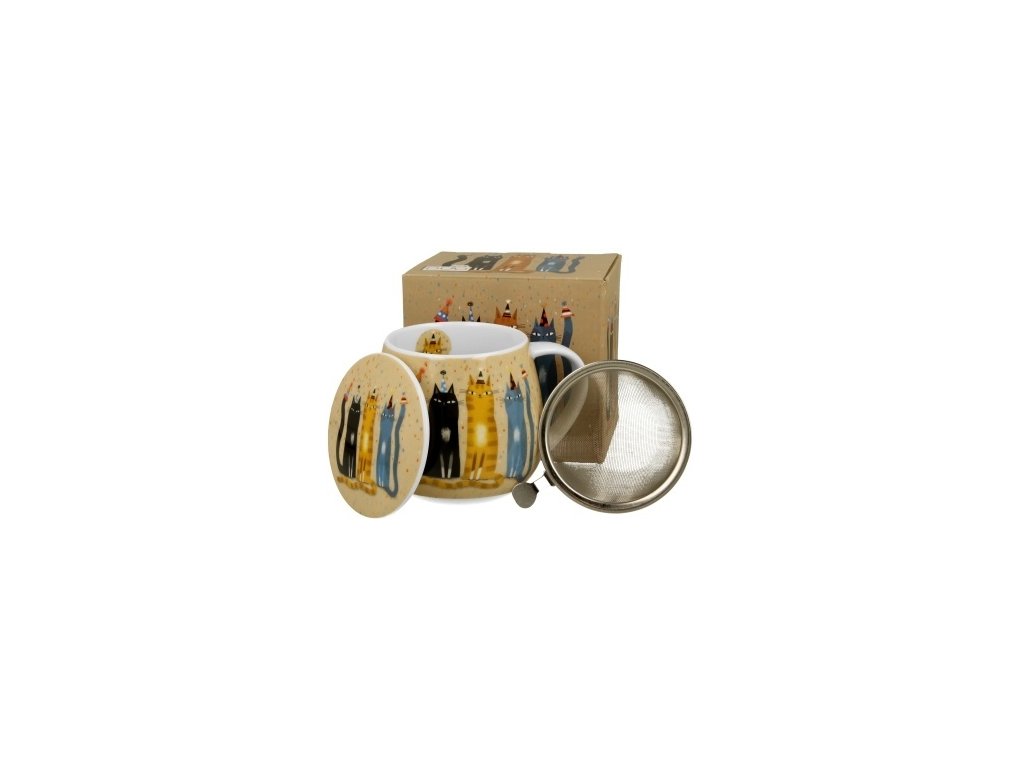 Porcelánový hrnek s čajovým sítkem Cat´s World Party