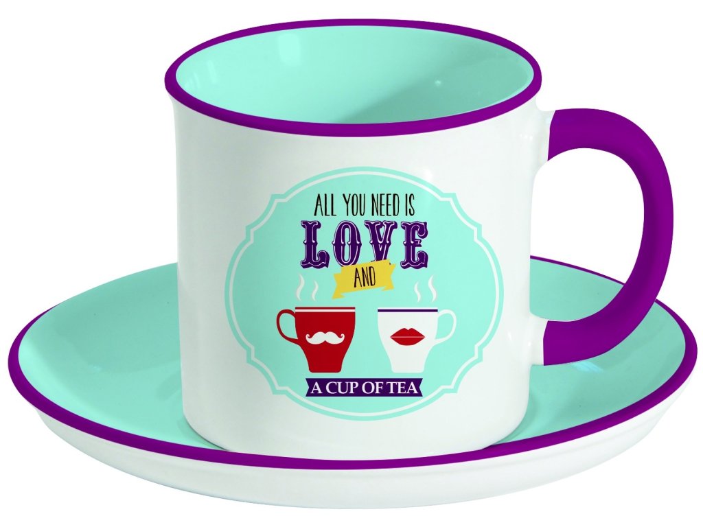 Porcelánový hrnek s podšálkem Retro Break Tea Blue