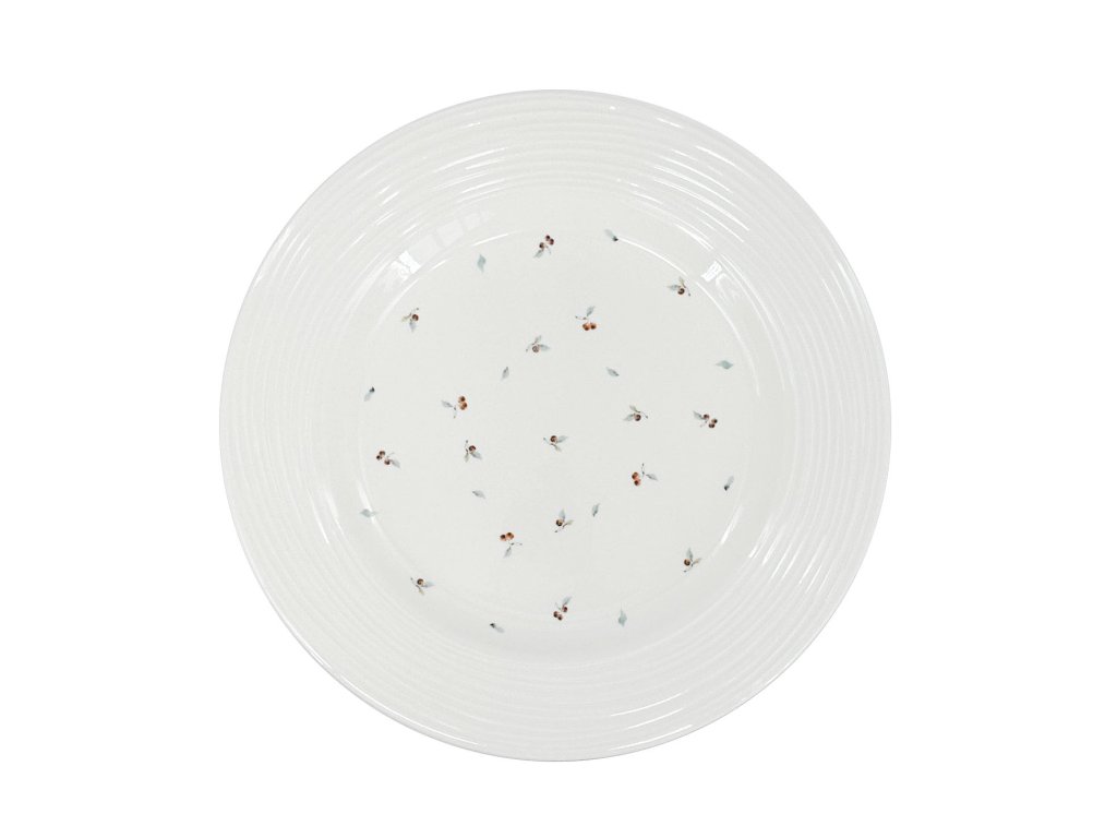 Mělký talíř Croft Berries přináší kouzlo přírody přímo na váš stůl. Vyrobený z kvalitního porcelánu, zdobený embosovanými okraji a rozesetým jemným motivem červených bobulí s drobnými lístky, které vytvářejí elegantní a přirozený vzhled.