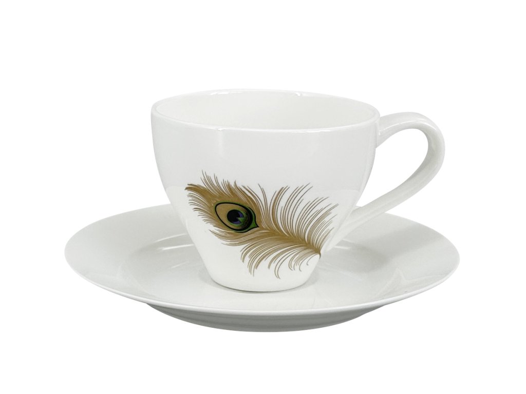 Porcelánový šálek s podšálkem Elano Pavone – 200 ml, větší peříčka