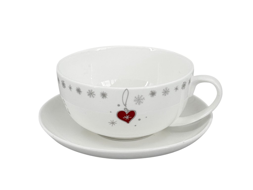 Porcelánový šálek s podšálkem Luna Koleda 250 ml, bílá/červená/šedá