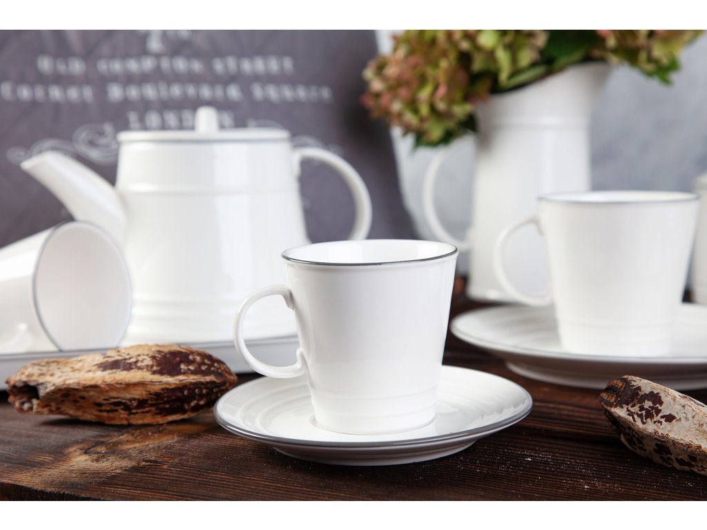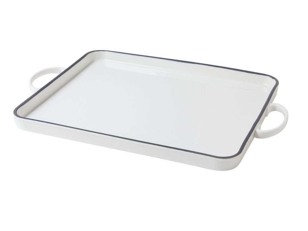 Design, který si pohrává s netradiční kombinací tvaru a materiálu. Tvar tak typický pro smaltované nádobí našich babiček a použitý materiál jakostní porcelán, působí mile a vlídně. Porcelánový tác mají smetanový nádech a elegantní šedý proužek jen podtrhuje kontrast křehkosti a retro tvaru „kovového“ nádobí. Designový tác v nadčasovém provedení. Moderní tác od české značky by inspire...porcelán s českou duší.