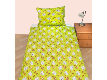 Ložní povlečení - dětské bavlna je vyrobeno z velmi jemné 100% bavlněné tkaniny. Plošná hmotnost (gramáž) tkaniny je 110g/m2. Tkanina má vysokou hustotu velmi jemných přízí a pro tyto své vlastnosti je velice jemná a příjemná na omak. Ložní povlečení je vyrobeno s rozměrovou rezervou pro vysrážení po vyprání. Použitá tkanina a povlečení jsou vyrobeny v ČR. Tkanina pro výrobu povlečení je certifikovaná a odpovídá hygienickým požadavkům pro děti do tří let.