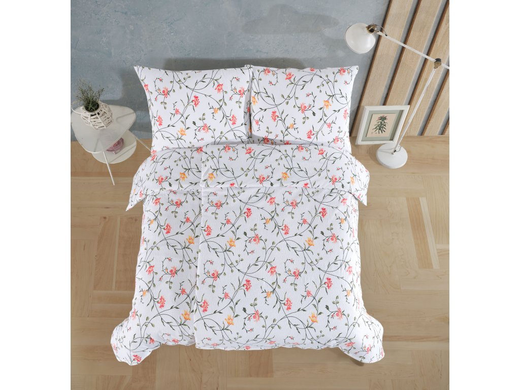 Povlečení je vyrobeno z velmi jemné 100% bavlněné tkaniny o plošné hmotnosti tkaniny 130g/m2. Krepování je vytvořeno pomocí speciální úpravy. Díky tomuto krepování se povlečení nemusí žehlit. Tkanina má vysokou hustotu velmi jemných přízí a pro tyto své vlastnosti je velice jemná a příjemná na omak. Ložní povlečení je vyrobeno s rozměrovou rezervou pro vysrážení po vyprání. Povlečení je vyrobeno v ČR s oblíbeným zipovým uzávěrem.