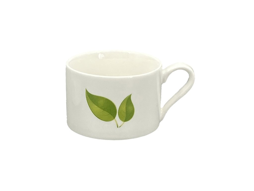 Kvalitní porcelán s nádechem smetanové barvy s dekorem čajových lístků. Tvar válce hrnku zaručuje dobrou stabilitu a je příjemný do ruky.