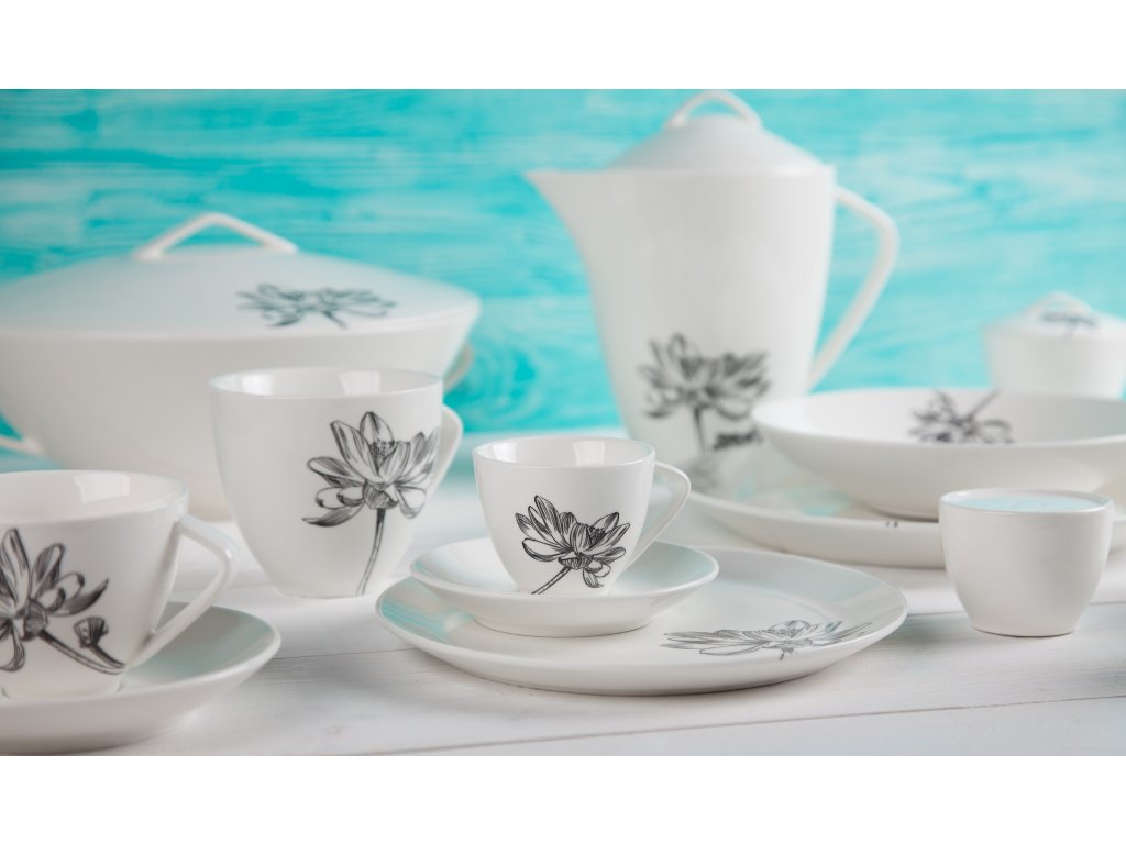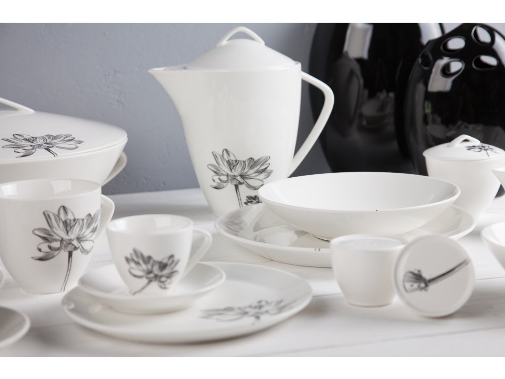 Klasika, elegance a nadčasovost. Tak lze charakterizovat tuto kolekci od české značky by inspire...porcelán s českou duší. Elegantní silueta černého květu podtržená sametově krémovou čistotou porcelánu.