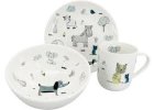 Dětská jídelní sada Little Boy – porcelán, talíř ø 20,5 cm, miska ø 15,5 cm, hrnek 350 ml, roztomilý motiv hrajícího si chlapečka, vhodné do myčky a mikrovlnné trouby, česká...