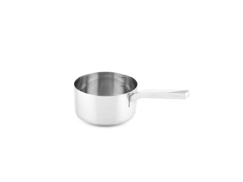 Masivní nádherné rukojeti s podpisem designéra - Pininfarina zdobí každý kus této kolekce. Opravdu nádherná kombinace strohého designu broušených hrnců s leštěnými úchytkami.