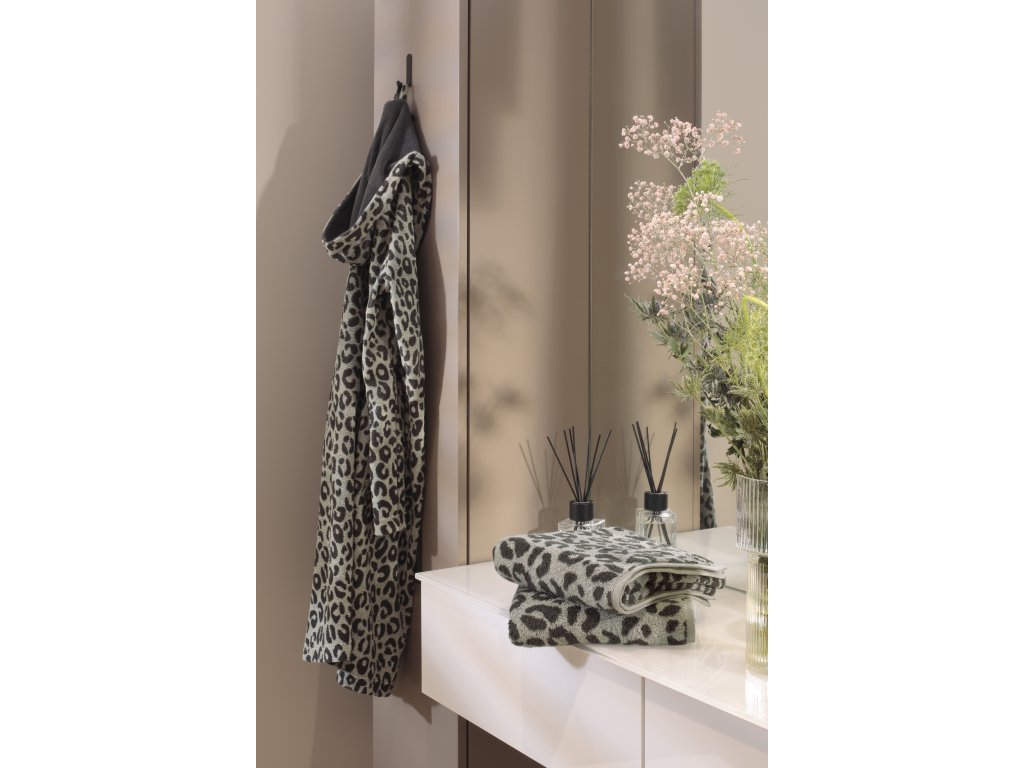 Odstín čedičová působí hluboce, stabilně a elegantně. Inspirovaný tmavým kamenem vnáší do koupelny pocit klidu, síly a moderní střídmosti. Jemný leo vzor dodává ručníku strukturu a osobitý detail, který je decentní, ale vizuálně zajímavý.