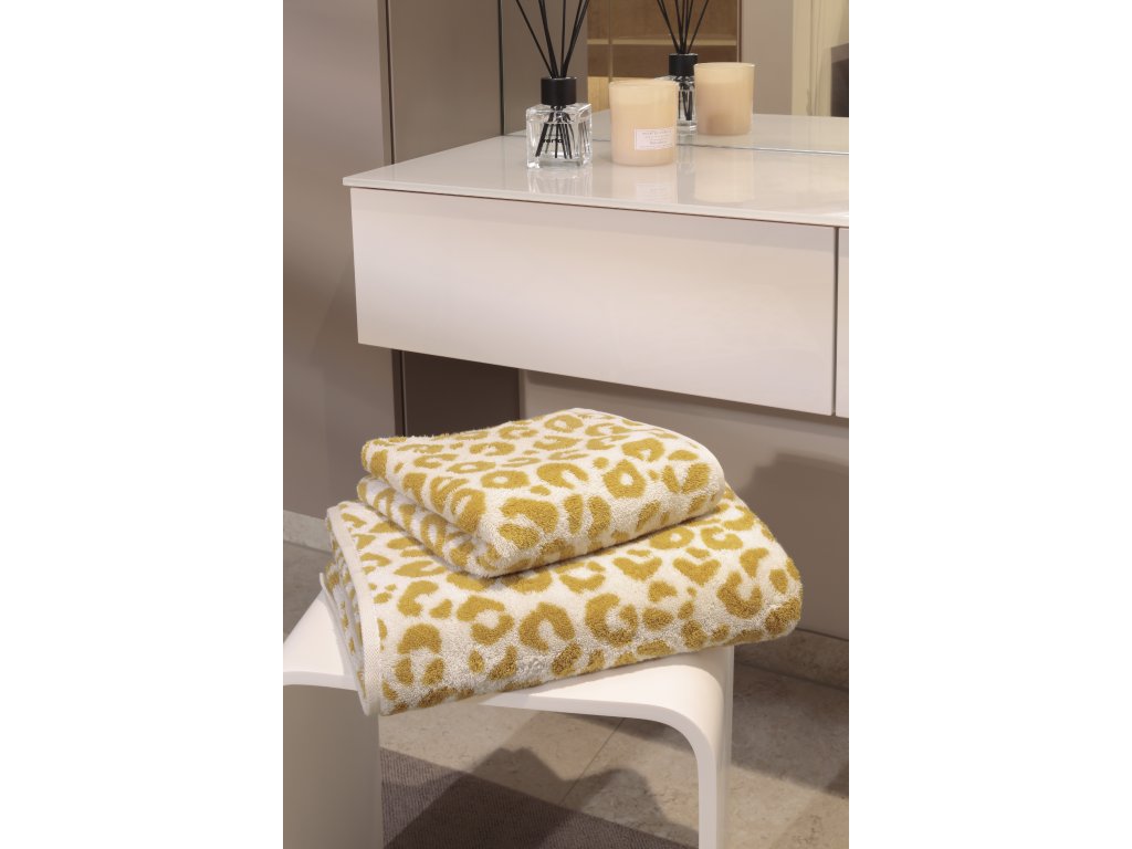 Odstín zlatá působí hřejivě, elegantně a luxusně, aniž by byl okázalý. Připomíná teplé tóny kovu a světla a vnáší do koupelny pocit útulnosti, klidu a jemné noblesy. Jemný leo vzor dodává ručníku strukturu a osobitý detail, který je moderní, ale stále vkusný a nadčasový.