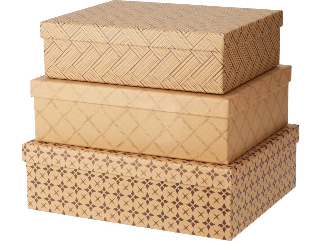 Sada 3 ks dárkových krabic, béžové s černým dekorem
