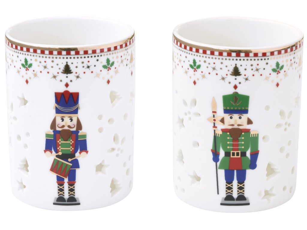 Rozjasněte svůj domov kouzlem Vánoc díky sadě porcelánových svícnů na čajovou svíčku s motivem Louskáčka. Tento elegantní kousek spojuje tradiční sváteční estetiku s jemným porcelánovým zpracováním, které vytvoří útulnou atmosféru ve vašem interiéru.