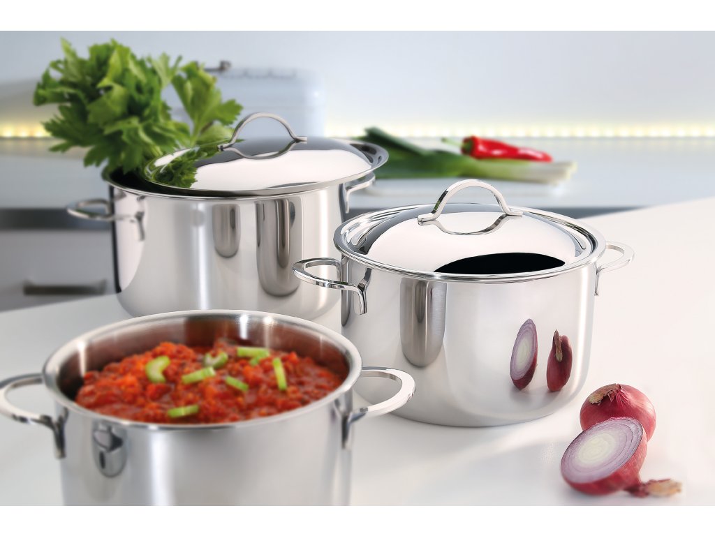 - Nerezová poklice: Každý hrnec je vybaven praktickou nerezovou poklici