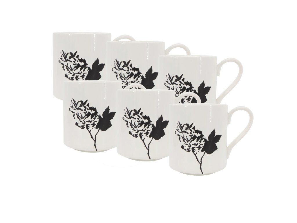 Sada porcelánových hrnků Natty 6ks s dekorem černé růže.