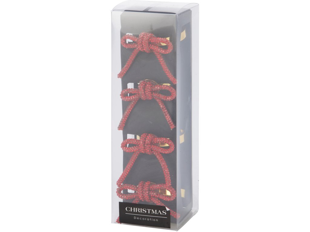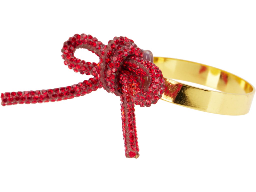Sada kroužků na ubrousky s červenou mašlí (4 ks, zinek)