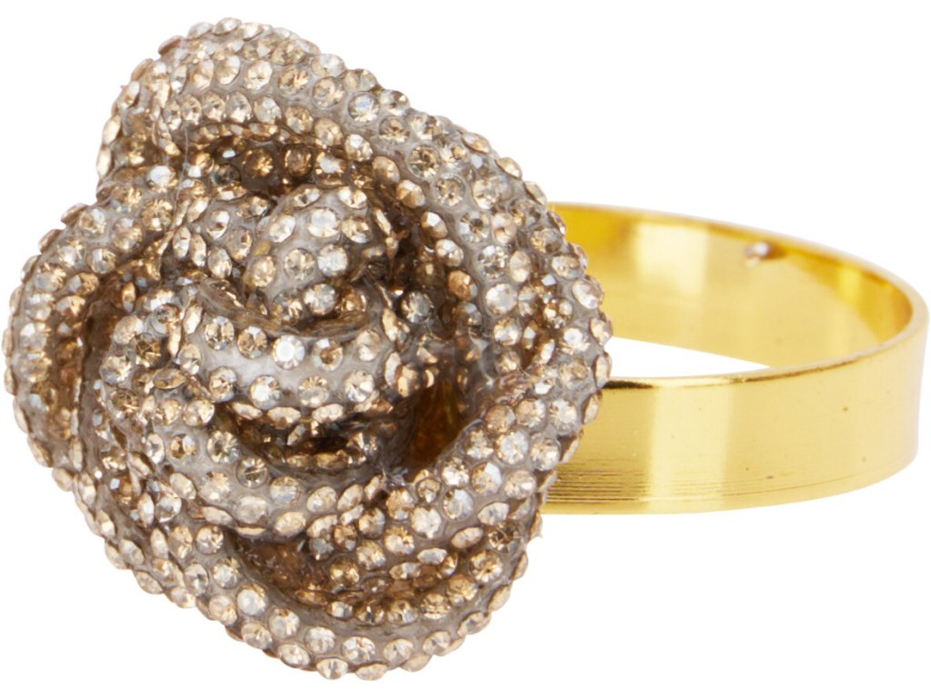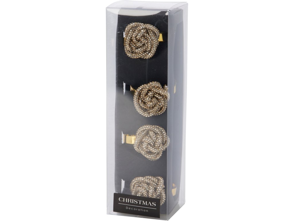 Sada kroužků na ubrousky se zlatou květinou (4 ks, zinek)