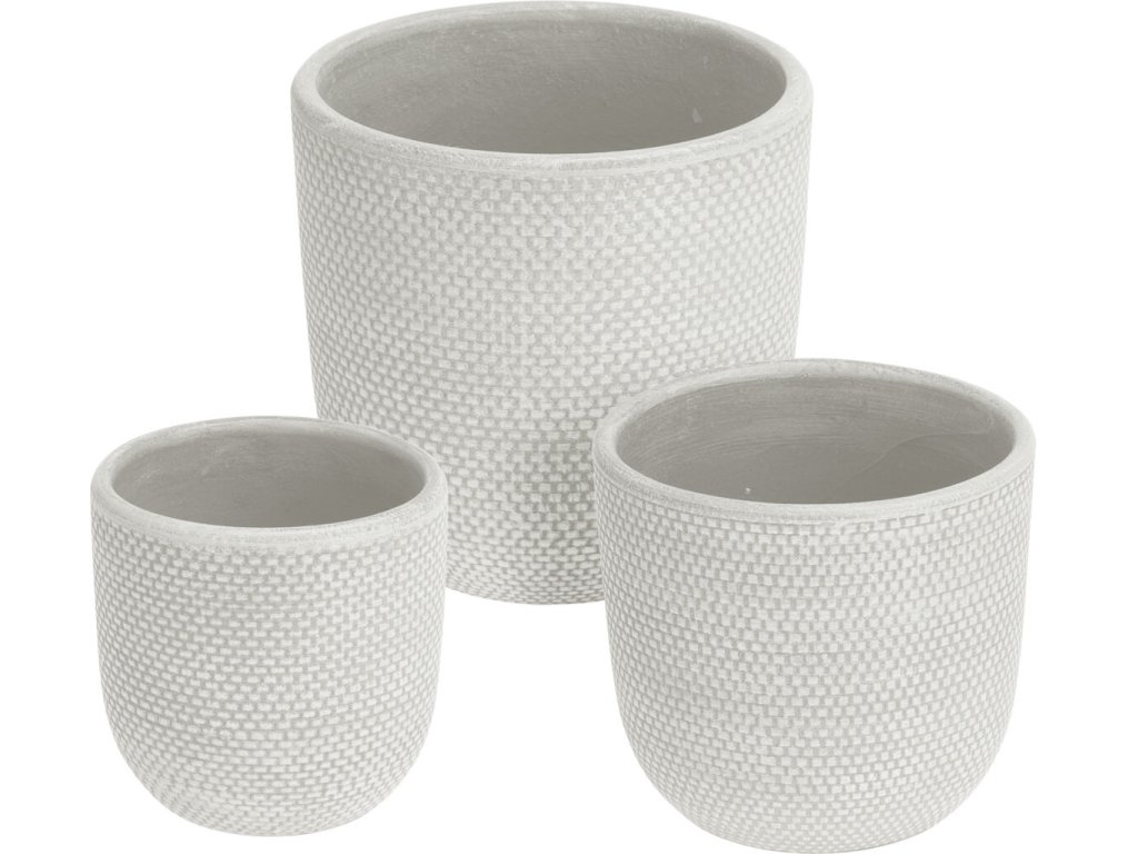 Sada květináčů Weave – smetanová, 3 ks, tři různé velikosti, s matnou texturou