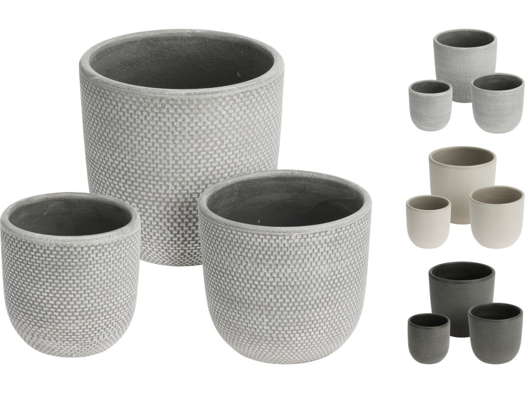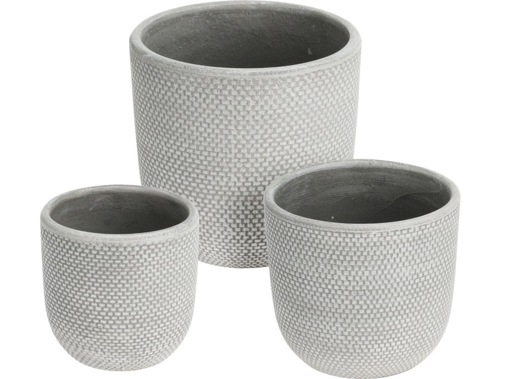 Sada květináčů Weave – světlá šedá, 3 ks, tři různé velikosti, s matnou texturou