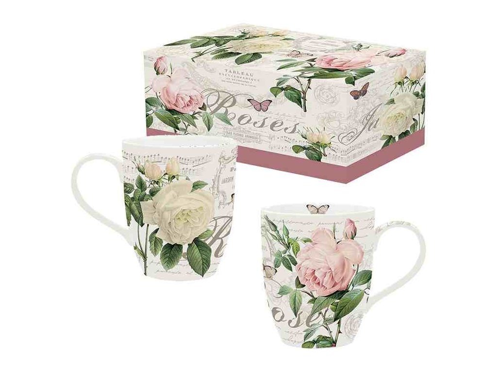 Sada dvou porcelánových hrnků Jardin Botanique s motivem růže se prodává v krásné dárkové krabičce. Objem 350 ml.