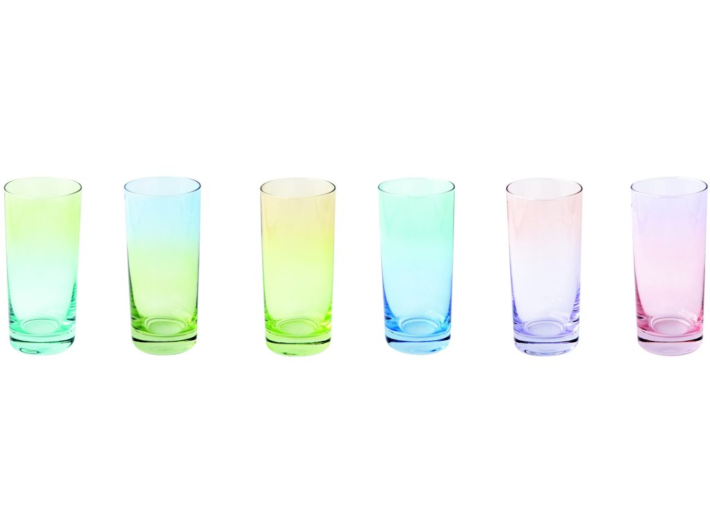 Celkový vzhled této sady šesti duhových skleniček na vodu Rainbow v dárkové krabičce spojuje funkčnost a estetiku, čímž vytváří atraktivní a praktický dar, který může ozdobit každý stůl a přinést do domácnosti špetku barevné elegance. Objem dvou skleniček v dárkovém balení je 430 ml.