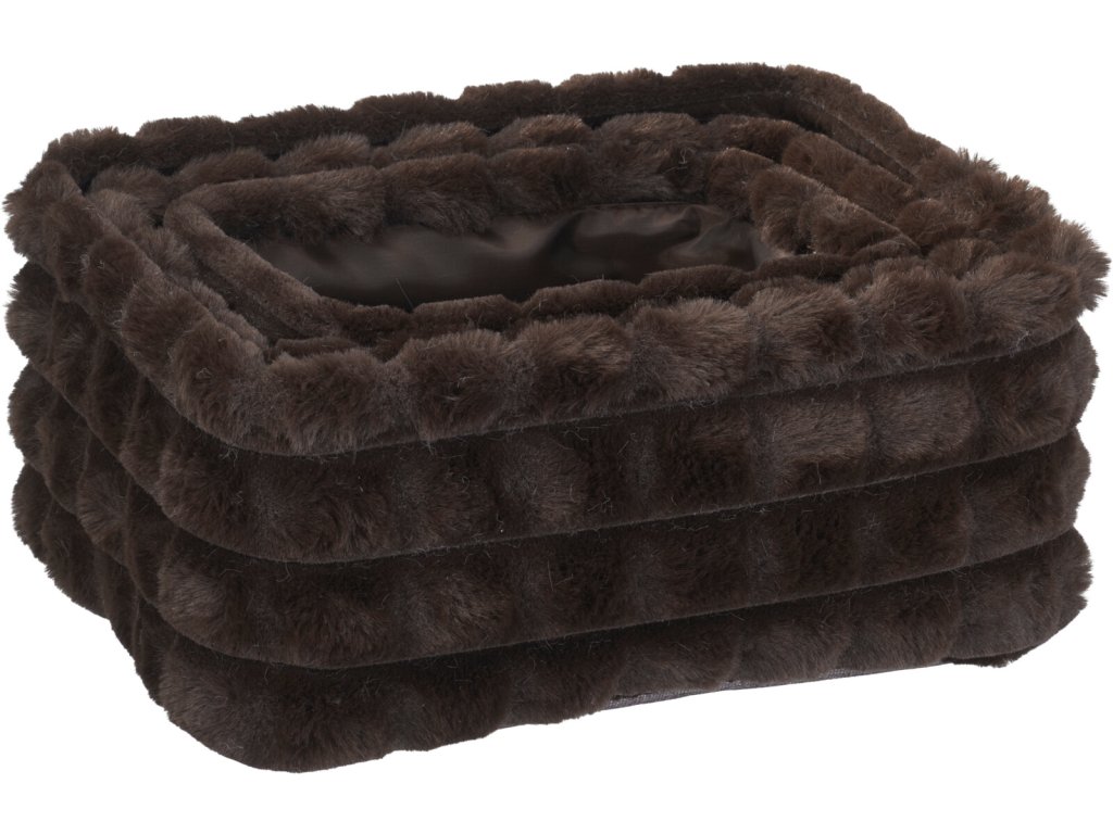 Sada úložných košíků s mřížkovou kožešinou tmavě hnědá (3 ks)